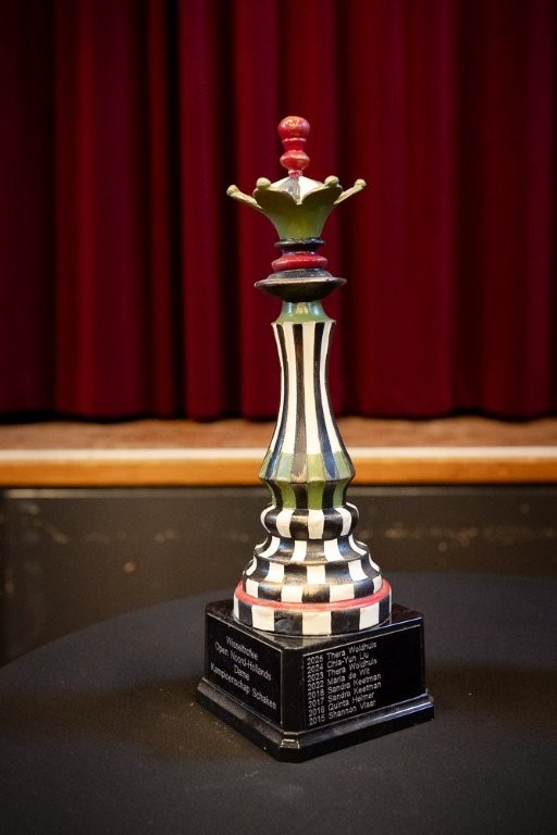 Ter gelegenheid van ons 50-jarig jubileum openden burgemeester Marjan van Kampen en wethouder Puck de Nijs het Dame toernooi met een speciale schaakbattle: het ‘Dame Duel’. Ze spelen een blitz-partij met 7,5 minuten bedenktijd per persoon. De twee bestuurders waren duidelijk aan elkaar gewaagd en maakten er een verrassend spannende partij van. In de slotfase ging de burgemeester door haar tijd, waardoor de wethouder – onder luid applaus – de winst pakte. Zij ontving daarna als prijs ‘De Gouden Dame’, een knipoog naar het jubileumjaar én naar haar overwinning.